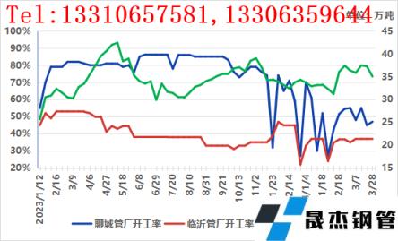 據網監測數據顯示,截至28日山東臨沂、聊城、濰坊、煙臺地區21家樣本96條產線開工率46.65%,環比下降2.8%,成材庫存47.92萬噸,同比下降4.52%。而主流市場庫存總量76.78萬噸,同比上升1.95%。管廠以及市場庫存在3月初達到峰值后,隨著月中期貨短暫反彈階段需求市場有小批量抄底的操作,但庫存壓力依舊不小。