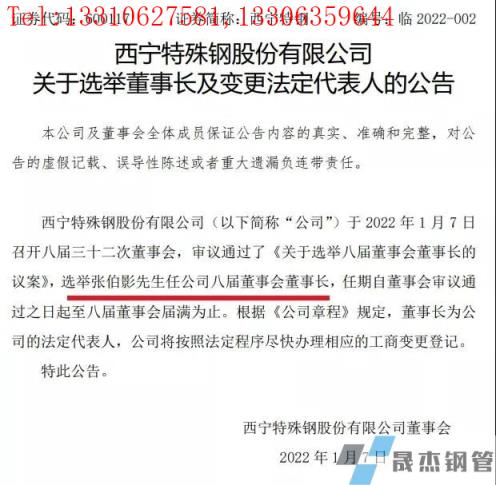 免責聲明:本網站(山東聊城晟杰無縫鋼管廠www.nfboat.cn)刊載的““70后”張伯影任西寧特鋼董事長”等均源于網絡,版權歸原作者所有,且僅代表原作者觀點,本文所載信息僅供參考。轉載僅為學習與交流之目的,如無意中侵犯您的合法權益,請及時聯系刪除。本網站刊登此篇文章并不意味著本站贊同其觀點或證實其內容的真實性,我們不對其科學性、嚴肅性等作任何形式的保證。如果侵犯了您的版權,請盡快聯系我們予以撤銷,謝謝合作!