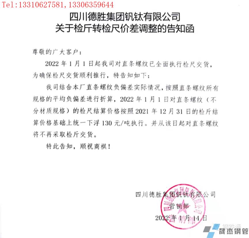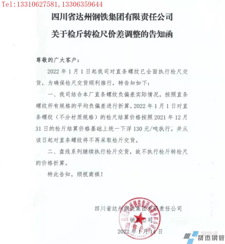 免責聲明:本網站(山東聊城晟杰無縫鋼管廠www.nfboat.cn)刊載的“四川多家鋼企發布檢斤轉檢尺價差調整通知”等均源于網絡,版權歸原作者所有,且僅代表原作者觀點,本文所載信息僅供參考。轉載僅為學習與交流之目的,如無意中侵犯您的合法權益,請及時聯系刪除。本網站刊登此篇文章并不意味著本站贊同其觀點或證實其內容的真實性,我們不對其科學性、嚴肅性等作任何形式的保證。如果侵犯了您的版權,請盡快聯系我們予以撤銷,謝謝合作!