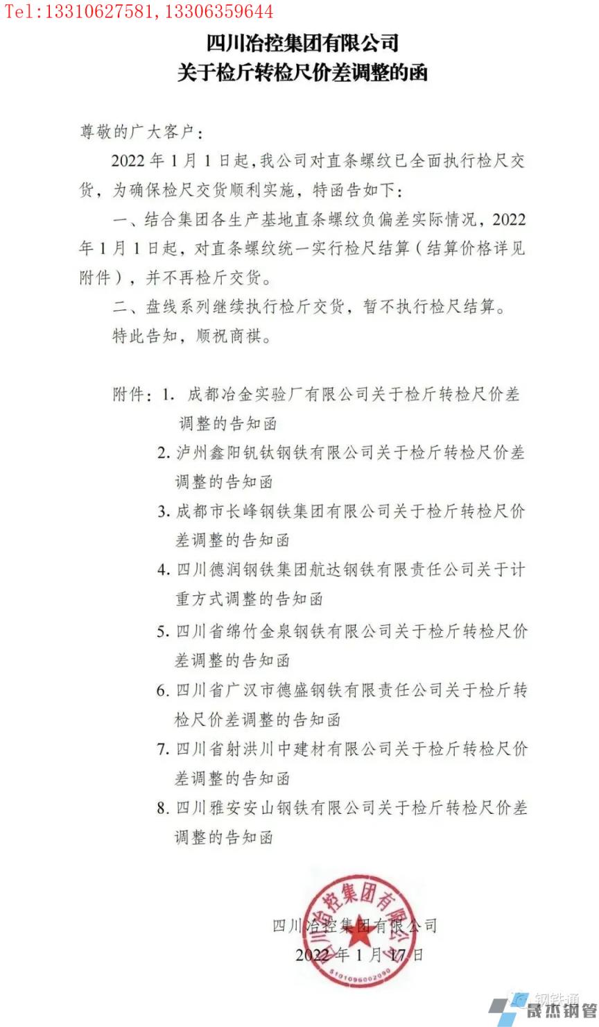 四川多家鋼企發布檢斤轉檢尺價差調整通知