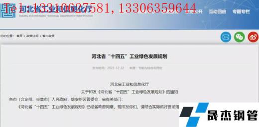 免責聲明:本網站(山東聊城晟杰無縫鋼管廠www.nfboat.cn)刊載的“兼并重組、淘汰關停、嚴控新增…河北“十四五”工業發展規劃出爐”等均源于網絡,版權歸原作者所有,且僅代表原作者觀點,本文所載信息僅供參考。轉載僅為學習與交流之目的,如無意中侵犯您的合法權益,請及時聯系刪除。本網站刊登此篇文章并不意味著本站贊同其觀點或證實其內容的真實性,我們不對其科學性、嚴肅性等作任何形式的保證。如果侵犯了您的版權,請盡快聯系我們予以撤銷,謝謝合作!