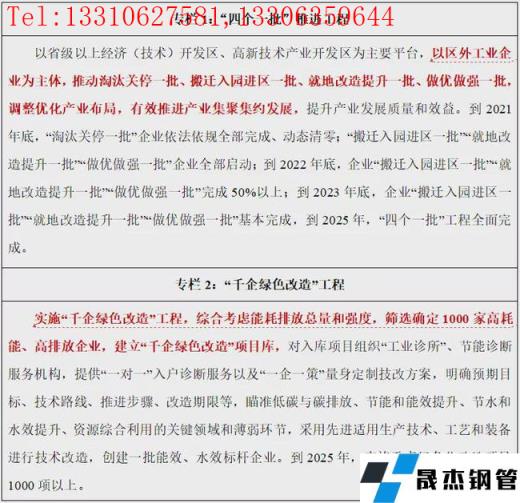 實施“千企綠色改造”工程,聚焦鋼鐵、建材等重點行業。堅決遏制“兩高”項目盲目發展,全面梳理排查擬建、在建和存量“兩高”項目,對“兩高”項目實行清單管理、分類處置、動態監控,對擬建“兩高”項目,嚴把準入關,嚴格執行鋼鐵、焦化、鑄造等高耗能行業產能置換相關政策,嚴控“兩高”項目新增產能;對在建“兩高”項目,能效水平低于本行業能耗限額準入值的,按有關規定停工整改,力爭達到標桿水平;對存量“兩高”項目,嚴格執行環保、質量、技術、能耗、安全等有關法律法規、標準和產業政策,堅決淘汰落后生產工藝、技術、裝備,加快淘汰落后產能。