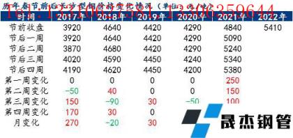 首先從近幾年春節(jié)前后長(zhǎng)沙型鋼價(jià)格變化情況來看,除了2021年,其余幾年節(jié)后第一周基本以穩(wěn)為主,主要是因?yàn)樾枨笪撮_始啟動(dòng),市場(chǎng)平盤運(yùn)行。元宵之后,需求逐漸得到釋放,除了2020年因公共衛(wèi)生事件影響,釋放進(jìn)度有所滯后,節(jié)后開盤價(jià)格出現(xiàn)回落,其余幾年以震蕩趨強(qiáng)運(yùn)行為主,不管是無縫鋼管廠還是貿(mào)易商,為獲利消化冬儲(chǔ)庫存,均對(duì)節(jié)后開門紅存在一定期待。而2022年節(jié)前收盤價(jià)格偏高,貿(mào)易商情緒較為謹(jǐn)慎,正常備庫,主動(dòng)冬儲(chǔ)意愿不強(qiáng),節(jié)后市場(chǎng)庫存壓力相對(duì)可控,對(duì)開盤價(jià)格存在一定支撐。