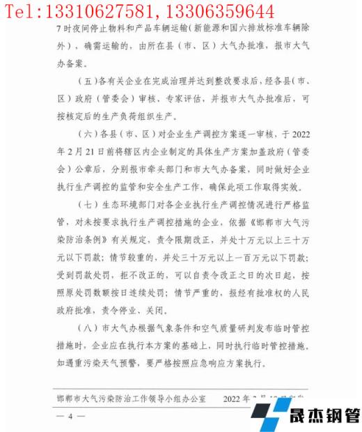 免責聲明:本網站(山東聊城晟杰無縫鋼管廠www.nfboat.cn)刊載的“限產50%!河北一地再發鋼企限產令!即日起至月底!”等均源于網絡,版權歸原作者所有,且僅代表原作者觀點,本文所載信息僅供參考。轉載僅為學習與交流之目的,如無意中侵犯您的合法權益,請及時聯系刪除。本網站刊登此篇文章并不意味著本站贊同其觀點或證實其內容的真實性,我們不對其科學性、嚴肅性等作任何形式的保證。如果侵犯了您的版權,請盡快聯系我們予以撤銷,謝謝合作!