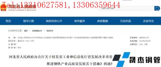 免責聲明:本網站(山東聊城晟杰無縫鋼管廠www.nfboat.cn)刊載的“重磅文件出爐!河北鋼鐵大調整!嚴查、重組、退出...”等均源于網絡,版權歸原作者所有,且僅代表原作者觀點,本文所載信息僅供參考。轉載僅為學習與交流之目的,如無意中侵犯您的合法權益,請及時聯系刪除。本網站刊登此篇文章并不意味著本站贊同其觀點或證實其內容的真實性,我們不對其科學性、嚴肅性等作任何形式的保證。如果侵犯了您的版權,請盡快聯系我們予以撤銷,謝謝合作!