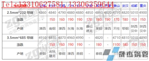 全國12個(gè)主要市場(chǎng)2.5mm*232 帶鋼平均價(jià)格4852元/噸,較上個(gè)交易日上調(diào)65元/噸。