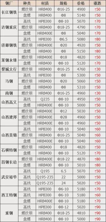 8日起廣東韶鋼:各料型上調30-50元/噸,具體價格以廠家價格表為準。