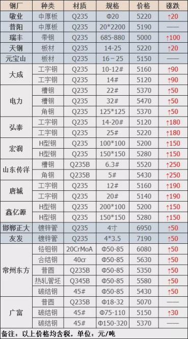 8日秦皇島安豐執行價上調20,調后:圓鋼頭、沖豆3820,模具鋼、大法蘭片、50厚上重型3800,大槽鋼、大H型鋼、火車大梁3720,無油汽車大梁、汽車弓子3600,2厚馬碲鐵3600,冷板小料3620,三角矽鋼片3620,不含稅,單位:元/噸 。