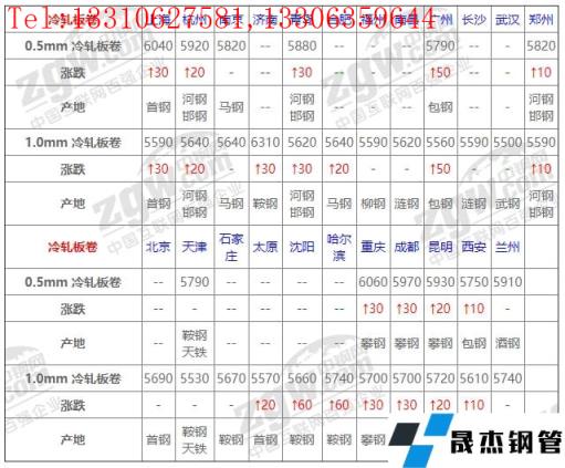 據(jù)價格顯示:今全國冷軋小幅上漲,漲幅10-60 ,今期貨寬幅震蕩,市場連漲數(shù)日,導(dǎo)致下游心態(tài)趨于謹慎,按需采-購為主,觀望情緒濃厚,低位成交有限,預(yù)計短期價格或?qū)⒊址€(wěn)運行;