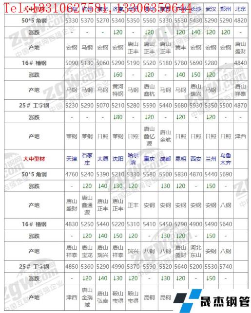 全國22個主要市場16# 槽鋼平均價格5308元/噸,較上個交易日下調19元/噸。