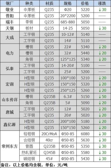 今日建、管材共11家無縫鋼管廠家調價發(fā)布,其中: