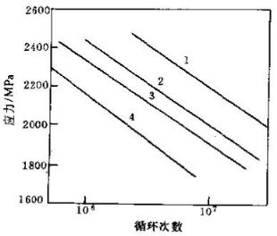 用40鋼、40Cr鋼和40CrMoA鋼加工成兩組疲勞試樣,第一組式樣在840℃正常淬火溫度下加熱淬火,硬度為56~57HRC,第二組用760℃淬火,淬火不充分,淬火硬度只能達到46~48HRC,將兩組式樣經過不同溫度回火至相同硬度(均為33~36HRC)然后進行疲勞試驗,試驗結果列于表1.實驗表明,淬火不充分的第二組試樣的抗扭疲勞強度比充分淬火的第一組試樣的抗扭疲勞強度低10.8%~37%。