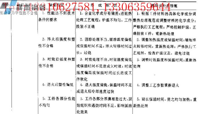 ▼表3有色金屬熱處理常見力學性能缺陷及防止方法