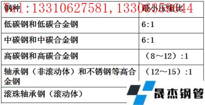 不同鋼種要求的最小壓縮比