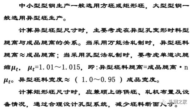 H型鋼、工字鋼、槽鋼等坯料斷面的選擇