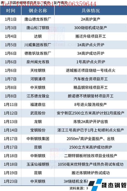 免責聲明:本網站(山東聊城晟杰無縫鋼管廠www.nfboat.cn)刊載的“1月國內20個鋼鐵項目開工、投產和復產”等均源于網絡,版權歸原作者所有,且僅代表原作者觀點,本文所載信息僅供參考。轉載僅為學習與交流之目的,如無意中侵犯您的合法權益,請及時聯系刪除。本網站刊登此篇文章并不意味著本站贊同其觀點或證實其內容的真實性,我們不對其科學性、嚴肅性等作任何形式的保證。如果侵犯了您的版權,請盡快聯系我們予以撤銷,謝謝合作!