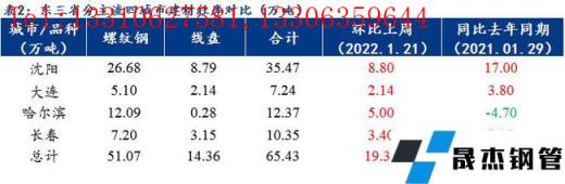 各主流城市分倉庫來看,本周沈陽市場幾大主流倉庫增庫較多;本周大連遠(yuǎn)東鋼材市場新鵬輝到貨較多,其余倉庫新?lián)徜撘苍陉懤m(xù)到貨。吉林省內(nèi)長春兩大主流倉庫現(xiàn)貨庫存也在增加。從無縫鋼管廠家產(chǎn)量及庫存來看,本周區(qū)域內(nèi)樣本無縫鋼管廠家總產(chǎn)量43.1萬噸,較上周增.9萬噸;廠庫總量12.56萬噸,較上周減少1.01萬噸,社庫則大幅度增20.24萬噸;本周無縫鋼管廠家產(chǎn)量增、廠庫降、社庫繼續(xù)大增,主要原因是部分無縫鋼管廠家復(fù)產(chǎn)、產(chǎn)量略有回升,廠庫繼續(xù)前移至市場,而貿(mào)易商由于下游無需求幾乎也無成交,預(yù)計(jì)春節(jié)過后區(qū)域內(nèi)社會(huì)庫存將繼續(xù)增加。