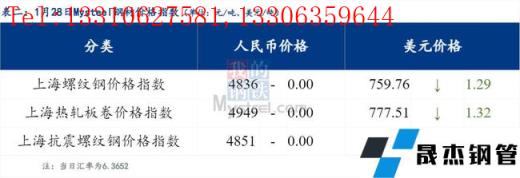 分地區方面,上海螺紋鋼價格指數4836,持平0.0;上海熱軋板卷價格指數4949,持平0.0。(單位:元/噸)
