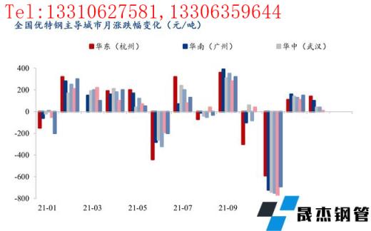 1月份優(yōu)特鋼市場(chǎng)價(jià)格震蕩上行。截至1月末,優(yōu)特鋼四大主流品種分別報(bào)收5265元/噸、5484元/噸、5665元/噸、5925元/噸,較12月末相比分別漲44元/噸、37元/噸、17元/噸、22元/噸。