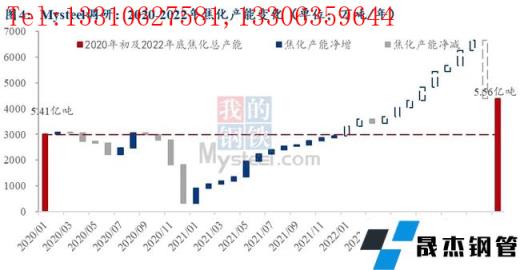 截至2021年1月21日,據調研統計,到2022年底總焦化產能預計將達到5.54億噸/年,將高于2021年底的5.4億噸/年,年增幅2.9%。
