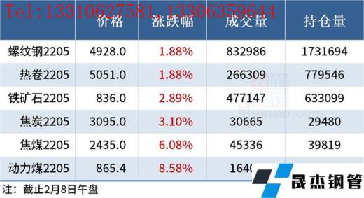 免責聲明:本網站(山東聊城晟杰無縫鋼管廠www.nfboat.cn)刊載的“2022年02月08日午報:鋼價全線上漲,動力煤期貨漲逾8%”等均源于網絡,版權歸原作者所有,且僅代表原作者觀點,本文所載信息僅供參考。轉載僅為學習與交流之目的,如無意中侵犯您的合法權益,請及時聯系刪除。本網站刊登此篇文章并不意味著本站贊同其觀點或證實其內容的真實性,我們不對其科學性、嚴肅性等作任何形式的保證。如果侵犯了您的版權,請盡快聯系我們予以撤銷,謝謝合作!