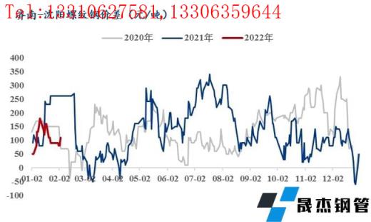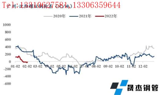 2、節后開市東北地區螺紋價格在京津大幅上漲以及無縫厚壁鋼管廠家的集體上調下累計上漲140-160元/噸,漲后價格已經明顯高于華東華南地區,從利潤角度出發無縫厚壁鋼管廠家更傾向于本地化銷售;截至2月6日東北螺紋鋼庫存約70.3萬噸較節前增加19.3萬噸同比增加3.9萬噸,盤線庫存約20.8萬噸較節前增加6.4萬噸同比增加13.7萬噸,從省份來看遼寧地區的庫存壓力整體較大,黑吉尚可。同時今年春節時間較早,離需求啟動還有近一個月的時間,因此即使在南方價格不具優勢的情況下,本地無縫厚壁鋼管廠家或繼續保持較高南下比例,2月份的實發量或高于計劃水平。