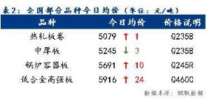 今日全國部分品種均價卷強板弱,板卷價差進一步收縮。