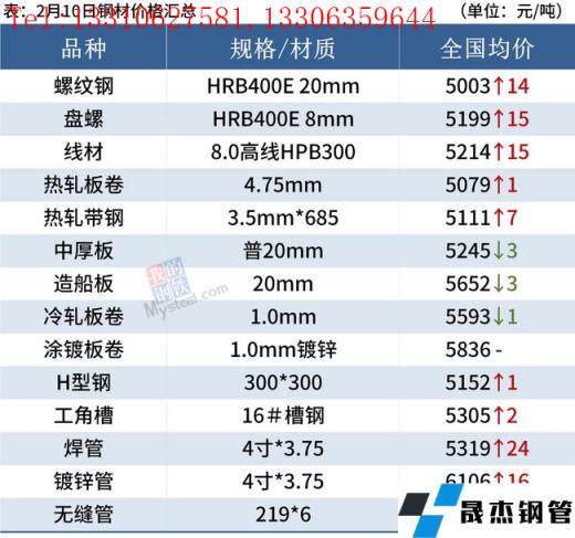 建筑厚壁無縫鋼管:2月10日,全國31個主要城市20mm三級抗震螺紋鋼均價5003元/噸,較上個交易日上漲14元/噸。本周建材產(chǎn)量受春節(jié)影響小幅回落;廠庫、社庫大幅增加,表觀消費小幅上升。短期來看,目前市場實際需求并未啟動,現(xiàn)貨價格多受情緒面驅(qū)動上漲,支撐力有限。因此預(yù)計短期現(xiàn)貨市場在情緒面驅(qū)動下價格仍有拉高的可能。