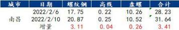 今年春節(jié)節(jié)前JJPG檢修,使得南昌建筑厚壁無縫鋼管市場春節(jié)前庫存非常低,而二月中旬FDTG有計劃進行檢修,對盤螺產量影響較大,由此可預計南昌建材庫存累庫速度將慢于往年。