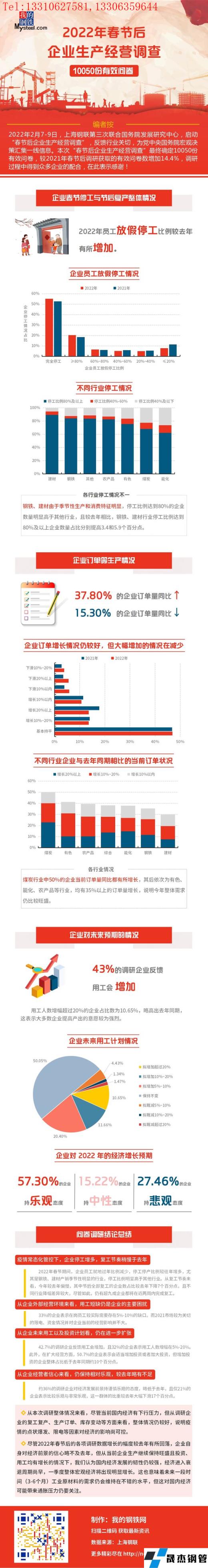 免責聲明:本網站(山東聊城晟杰無縫鋼管廠www.nfboat.cn)刊載的“一圖了解2022年春節后企業生產經營情況”等均源于網絡,版權歸原作者所有,且僅代表原作者觀點,本文所載信息僅供參考。轉載僅為學習與交流之目的,如無意中侵犯您的合法權益,請及時聯系刪除。本網站刊登此篇文章并不意味著本站贊同其觀點或證實其內容的真實性,我們不對其科學性、嚴肅性等作任何形式的保證。如果侵犯了您的版權,請盡快聯系我們予以撤銷,謝謝合作!