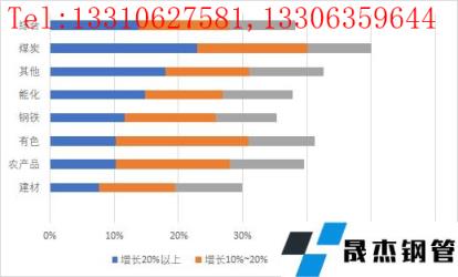 與去年同期對比來看,在經濟下行壓力加大的情況下,調研樣本企業訂單仍然出現較為可觀的增長,說明國內經濟的韌性較強。但值得注意的是,訂單同比增加的企業數量占比較去年已經出現下滑勢頭,尤其是增幅超過20%訂單的企業數量占比下滑4.2分百分點。從各行業情況來看,煤炭行業中50%的企業當前訂單量同比都有所增長,其后依次為有色、能化、農產品等行業,均有35%以上的訂單量增長,說明今年整體需求仍比較旺盛。