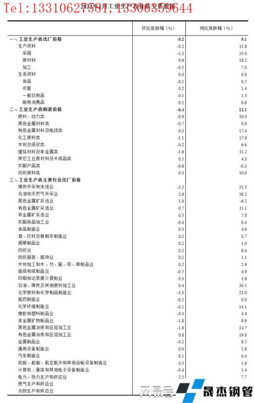 免責聲明:本網站(山東聊城晟杰無縫鋼管廠www.nfboat.cn)刊載的“中國1月PPI同比上漲9.1%,環比下降0.2%”等均源于網絡,版權歸原作者所有,且僅代表原作者觀點,本文所載信息僅供參考。轉載僅為學習與交流之目的,如無意中侵犯您的合法權益,請及時聯系刪除。本網站刊登此篇文章并不意味著本站贊同其觀點或證實其內容的真實性,我們不對其科學性、嚴肅性等作任何形式的保證。如果侵犯了您的版權,請盡快聯系我們予以撤銷,謝謝合作!