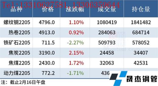 免責聲明:本網站(山東聊城晟杰無縫鋼管廠www.nfboat.cn)刊載的“2022年02月16日午報:鋼價局部反彈,鋼材_無縫鋼管和焦炭期貨上漲”等均源于網絡,版權歸原作者所有,且僅代表原作者觀點,本文所載信息僅供參考。轉載僅為學習與交流之目的,如無意中侵犯您的合法權益,請及時聯系刪除。本網站刊登此篇文章并不意味著本站贊同其觀點或證實其內容的真實性,我們不對其科學性、嚴肅性等作任何形式的保證。如果侵犯了您的版權,請盡快聯系我們予以撤銷,謝謝合作!