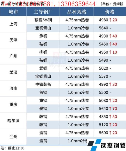 ◎樂從:21日早盤熱卷市場價格上漲10,4.75以上普柳燕4950-4960,2.75普5020-5170錳5140-5160。(單位:元/噸)