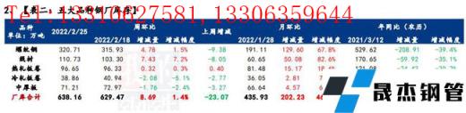 免責聲明:本網站(山東聊城晟杰無縫鋼管廠www.nfboat.cn)刊載的“解讀:聚焦鋼鐵產業數據(2月24日)—板材總庫存首次去化,建材延續供庫雙增”等均源于網絡,版權歸原作者所有,且僅代表原作者觀點,本文所載信息僅供參考。轉載僅為學習與交流之目的,如無意中侵犯您的合法權益,請及時聯系刪除。本網站刊登此篇文章并不意味著本站贊同其觀點或證實其內容的真實性,我們不對其科學性、嚴肅性等作任何形式的保證。如果侵犯了您的版權,請盡快聯系我們予以撤銷,謝謝合作!