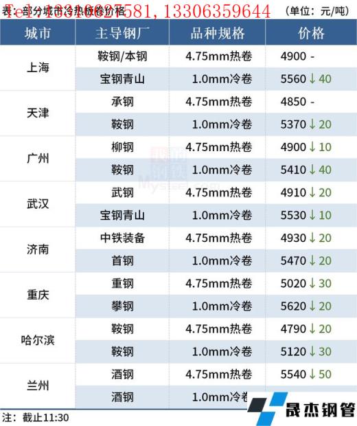 ◎天津:25日早盤冷軋市場價格部分資源下跌20,1.0天鐵5380首鋼5430(穩)唐鋼5360包鋼5380。(單位:元/噸)