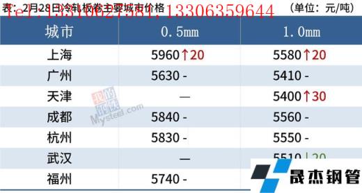 冷軋板卷:2月28日,全國24個主要城市1.0mm冷卷均價5545元/噸,較上個交易日上漲5元/噸。據貿易商反饋,今日冷軋行情在延續前期偏悲觀情緒大部分地區弱穩運行,少部分地區暗降出貨,兌現情緒漸濃,維持出貨為主。下游行業全面復工復產,多按需采購,備貨意愿不高。預計3月1日國內冷軋現貨價格多窄幅震蕩運行。
