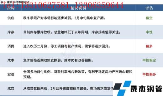 供應(yīng)層面,隨著冬奧會(huì)結(jié)束,無縫厚壁鋼管廠家集中復(fù)產(chǎn),若邯鄲地區(qū)限產(chǎn)不加嚴(yán),預(yù)計(jì)未來一段時(shí)間無縫厚壁鋼管廠家周產(chǎn)量或維持130萬噸左右;流通環(huán)節(jié),從貿(mào)易商庫存成本去分析,年前資源已經(jīng)沒有利潤,年后到的資源已經(jīng)虧損,短期存在成本支撐;需求方面,下游需求緩慢恢復(fù)中,雖不及預(yù)期,但好在廠庫、社庫均不高,需求尚有等待空間。綜合預(yù)計(jì),短期市場(chǎng)存在底部支撐,預(yù)計(jì)本周中厚板價(jià)格企穩(wěn)為主。
