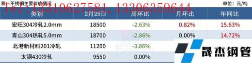 近期鎳鐵成交減少價(jià)格企穩(wěn),部分成交下探,而304廢不銹鋼價(jià)格下調(diào),不銹鋼方面無縫厚壁鋼管廠家挺價(jià)心態(tài)減弱,目前3月份無縫厚壁鋼管廠家排產(chǎn)并無減產(chǎn)計(jì)劃,但接單相對(duì)乏力,后續(xù)到貨或?qū)⒊掷m(xù)增加,預(yù)計(jì)本周304現(xiàn)貨價(jià)格高位盤整運(yùn)行。