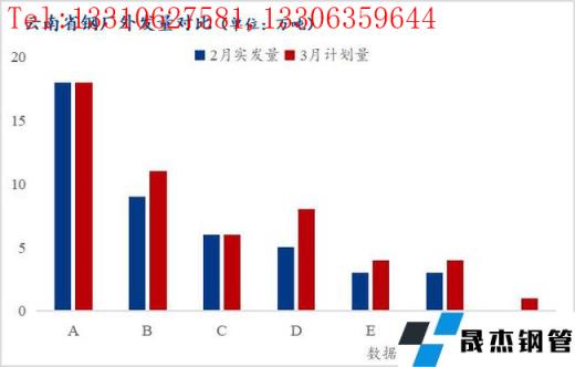 2、3月份云南省建筑厚壁無(wú)縫鋼管資源計(jì)劃投放量111萬(wàn)噸,較上個(gè)月增加22萬(wàn)噸,增幅24.72%,主要原因是部分無(wú)縫厚壁鋼管廠家新高爐點(diǎn)火生產(chǎn),無(wú)縫厚壁鋼管廠家產(chǎn)量增加。。