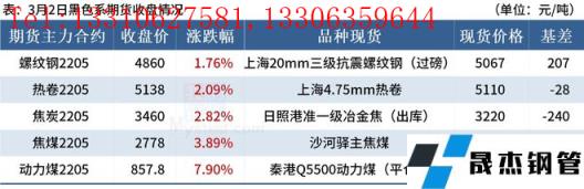 ◎ 山西部分無縫厚壁鋼管廠家今日接到冬殘奧會限產(chǎn)指令,均是口頭通知,限產(chǎn)比例各廠不一。同相關(guān)無縫厚壁鋼管廠家落實得知,原計劃近兩日復產(chǎn)的高爐暫緩至3月5日之后再進行復產(chǎn)。所以冬殘奧會限產(chǎn)期間,山西無縫厚壁鋼管廠家高爐產(chǎn)能利用率會保持在77%左右,目前來看影響面較小。