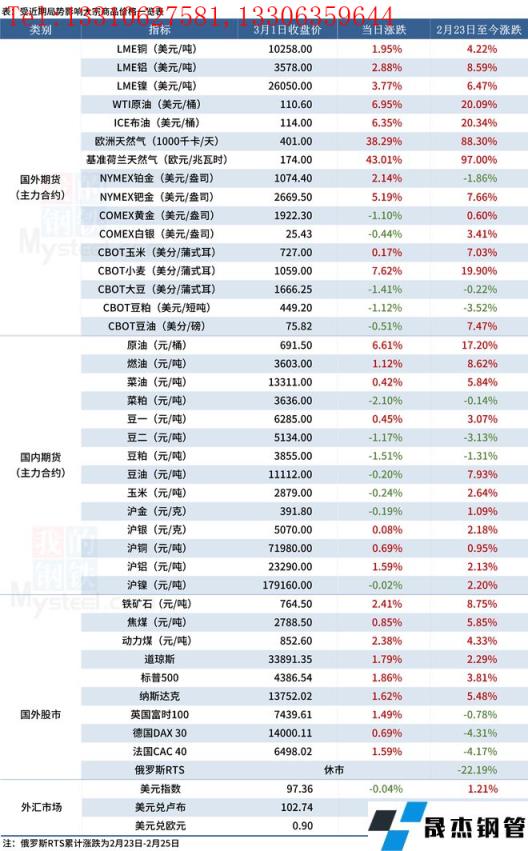 免責聲明:本網站(山東聊城晟杰無縫鋼管廠www.nfboat.cn)刊載的“受近期局勢影響大宗商品價格一覽表(3月2日)”等均源于網絡,版權歸原作者所有,且僅代表原作者觀點,本文所載信息僅供參考。轉載僅為學習與交流之目的,如無意中侵犯您的合法權益,請及時聯系刪除。本網站刊登此篇文章并不意味著本站贊同其觀點或證實其內容的真實性,我們不對其科學性、嚴肅性等作任何形式的保證。如果侵犯了您的版權,請盡快聯系我們予以撤銷,謝謝合作!