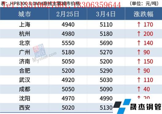 據(jù)監(jiān)測,截至3月4日,全國主要城市20mm三級抗震螺紋鋼均價4946元/噸,周環(huán)比上漲77元/噸;8.0mmHPB300高線均價5161元/噸,周環(huán)比上漲94元/噸。