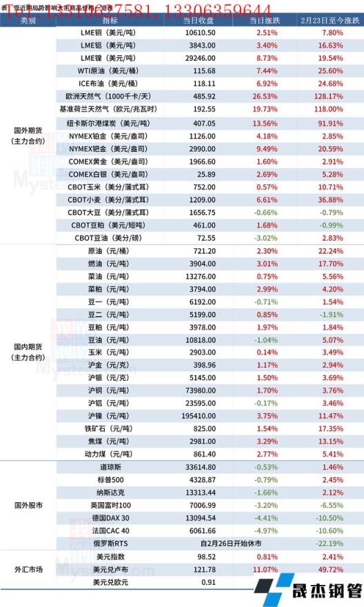 免責聲明:本網站(山東聊城晟杰無縫鋼管廠www.nfboat.cn)刊載的“受近期局勢影響大宗商品價格一覽表(3月4日)”等均源于網絡,版權歸原作者所有,且僅代表原作者觀點,本文所載信息僅供參考。轉載僅為學習與交流之目的,如無意中侵犯您的合法權益,請及時聯系刪除。本網站刊登此篇文章并不意味著本站贊同其觀點或證實其內容的真實性,我們不對其科學性、嚴肅性等作任何形式的保證。如果侵犯了您的版權,請盡快聯系我們予以撤銷,謝謝合作!