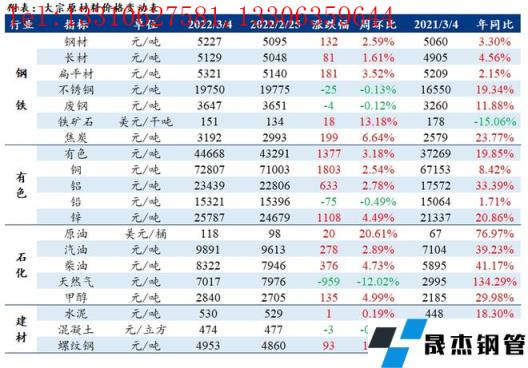 免責聲明:本網站(山東聊城晟杰無縫鋼管廠www.nfboat.cn)刊載的“周報:大宗原材料價格周報(2.28-3.4)”等均源于網絡,版權歸原作者所有,且僅代表原作者觀點,本文所載信息僅供參考。轉載僅為學習與交流之目的,如無意中侵犯您的合法權益,請及時聯系刪除。本網站刊登此篇文章并不意味著本站贊同其觀點或證實其內容的真實性,我們不對其科學性、嚴肅性等作任何形式的保證。如果侵犯了您的版權,請盡快聯系我們予以撤銷,謝謝合作!