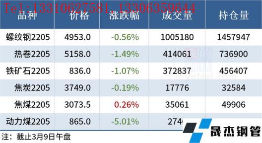免責聲明:本網站(山東聊城晟杰無縫鋼管廠www.nfboat.cn)刊載的“2022年03月09日午報:鋼價多數下跌,動力煤期貨跌逾5%”等均源于網絡,版權歸原作者所有,且僅代表原作者觀點,本文所載信息僅供參考。轉載僅為學習與交流之目的,如無意中侵犯您的合法權益,請及時聯系刪除。本網站刊登此篇文章并不意味著本站贊同其觀點或證實其內容的真實性,我們不對其科學性、嚴肅性等作任何形式的保證。如果侵犯了您的版權,請盡快聯系我們予以撤銷,謝謝合作!