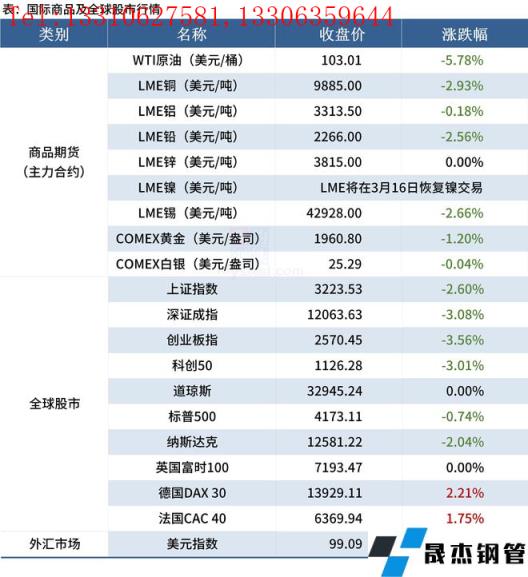 ◎ 倫敦金屬交易所(LME)稱鎳合約將在當(dāng)?shù)貢r(shí)間3月16日恢復(fù)交易,并對所有金屬的每日價(jià)格波動(dòng)施加15%幅度的限制。