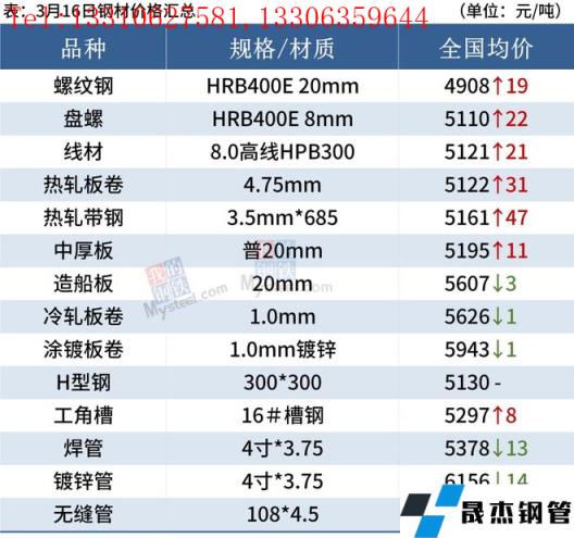3月16日,國(guó)內(nèi)厚壁無縫鋼管市場(chǎng)漲跌互現(xiàn),唐山鋼坯出廠價(jià)格漲40報(bào)4680元/噸。成交方面,隨著期螺受宏觀消息面帶動(dòng)大幅上漲,部分地區(qū)無縫厚壁鋼管廠家積極推漲,商家心態(tài)明顯好轉(zhuǎn),市場(chǎng)交投氛圍濃厚,投機(jī)性需求有所增加。