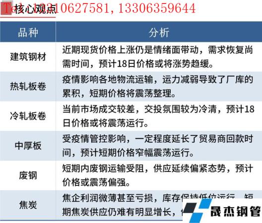 建筑厚壁無縫鋼管:3月17日,全國31個主要城市20mm三級抗震螺紋鋼均價4940元/噸,較上個交易日上漲32元/噸。本周受山西無縫厚壁鋼管廠家復產(chǎn)影響,產(chǎn)量繼續(xù)小幅回升,社會庫存繼續(xù)下降,但廠庫受疫情影響有所增加,本周表觀消費出現(xiàn)回落。短期來看,近期現(xiàn)貨價格上漲仍是情緒面帶動,需求恢復尚需時間,短期還需要關注疫情對于需求復蘇影響。綜合來看,預計18日國內(nèi)建筑厚壁無縫鋼管價格或?qū)q勢趨緩為主。