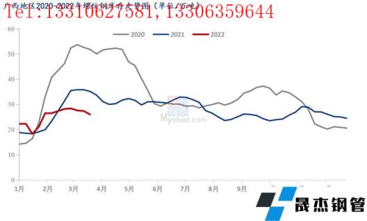 圖表三:廣西地區(qū)線盤庫存走勢(shì)圖